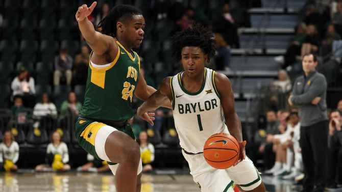 Jeremy Roach has missed the past two games after suffering a concussion in Baylor’s loss to UConn, which has forced a pair of freshmen to shoulder more responsibility. VJ Edgecombe has been more assertive on the offensive end against Abilene Christian and Norfolk State, totaling 30 points, 15 rebounds, 7 assists and 7 steals and shooting 60% from the field. Classmate Robert Wright III moved into the starting lineup in Roach’s place and just had 16 points and 13 assists against Norfolk.