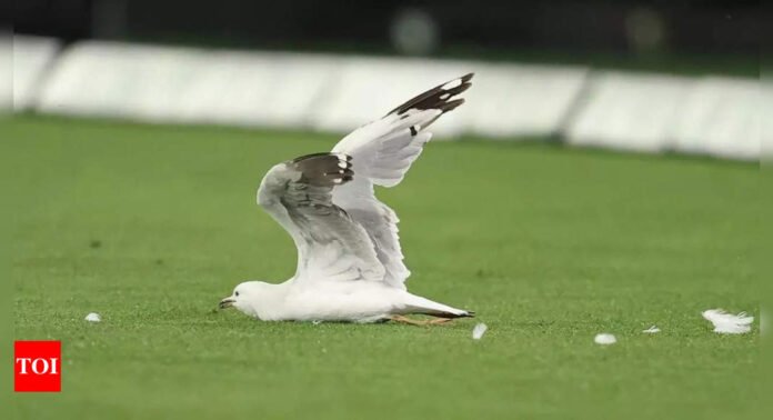 The ball travelled towards the boundary and unfortunately hit a seagull. The impact sent the ball over the boundary for six runs. A security guard removed the seagull from the field.