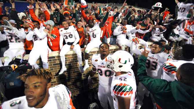 At that point, Miami had blockers out in front and Elder had the speed to evade would-be tacklers and score in an improbable what-did-I-just-see moment. Officials picked up a flag that had been thrown earlier in the mayhem, and the touchdown stood. The ACC announced the following day that the officials botched the final play and it should not have counted. — Adelson